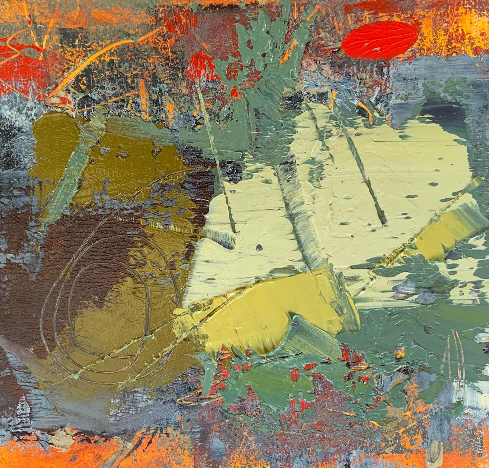 Oils and cold wax medium on 24x36 inch box canvas.